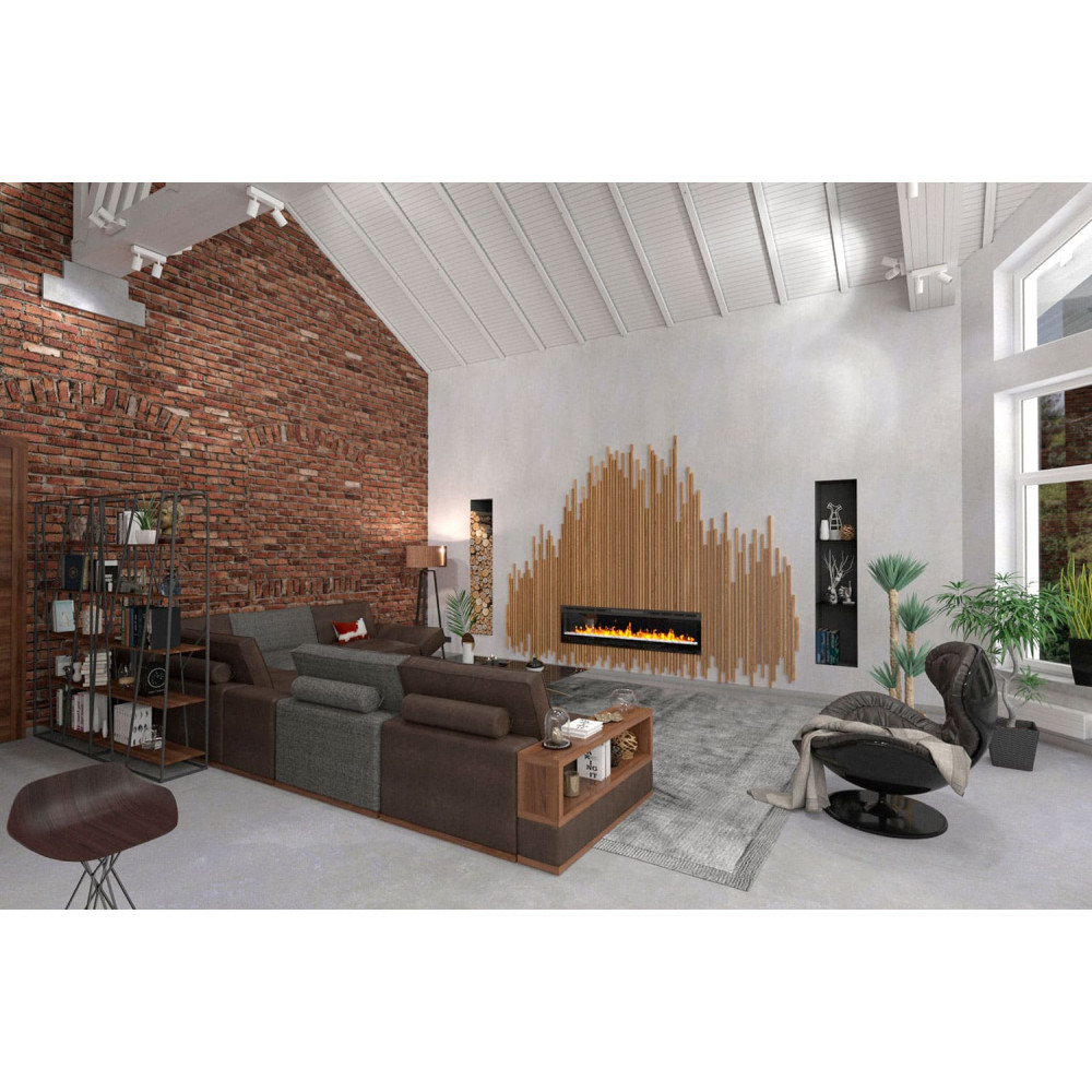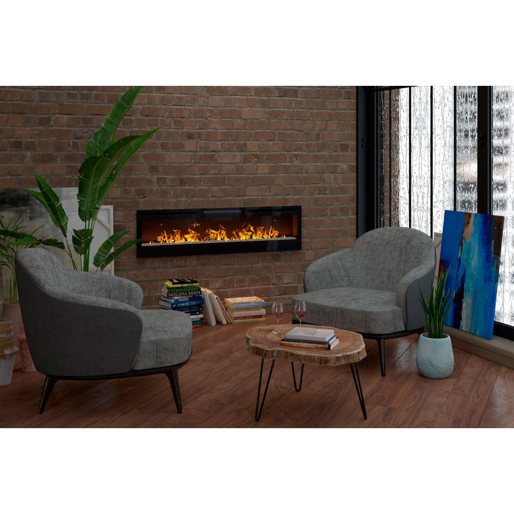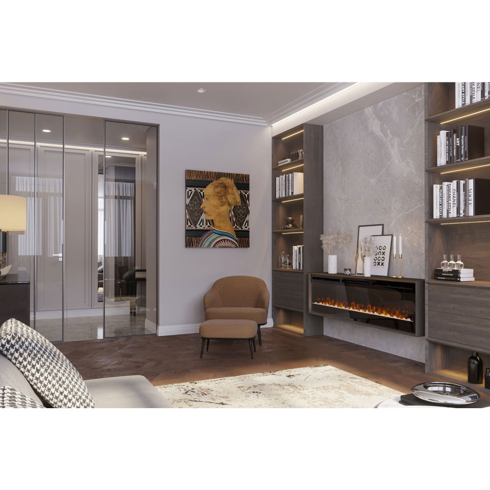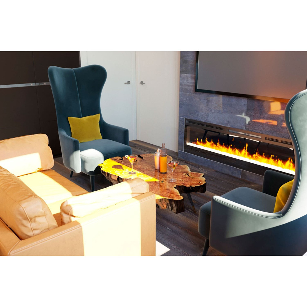 Настінний електрокамін Dimplex Prism 74 LED велике вогнище для вбудовування в нішу в стіні або спеціальний портал. У каміні реалізовано нову технологію горіння Optiflame LED. Optiflame LED є інноваційною технологією, яка створює незвичайний ефект горіння вогню. У внутрішній частині внизу вогнища довільно лежать акрилові кубики, які імітують кригу. Такий наповнювач охоплений полум'ям виглядає незвичайно та цікаво. Прозорі шматочки пропускають крізь себе світло, переламуючи промені, у результаті створюється особлива картинка. Крім того, в каміні вбудований світлодіодний дисплей, що дозволяє змінювати колірну гаму під настрій. Понад точна робота на обігрів вогнища допоможе створити максимально комфортні умови у вашому будинку.