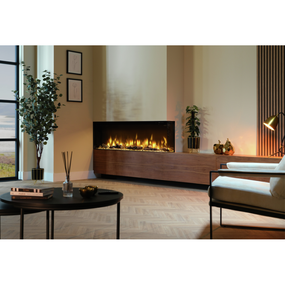 Панорамний видНасолоджуйтеся бездоганним панорамним видом з трьох сторін із більшим і краще тонованим склом Ignite Bold. Ця гарантує, що захоплююче полум’я буде відображено під будь-яким кутом, забезпечуючи дивовижний та візуально вражаючий ефект, який покращує будь-яку житлову зону. |