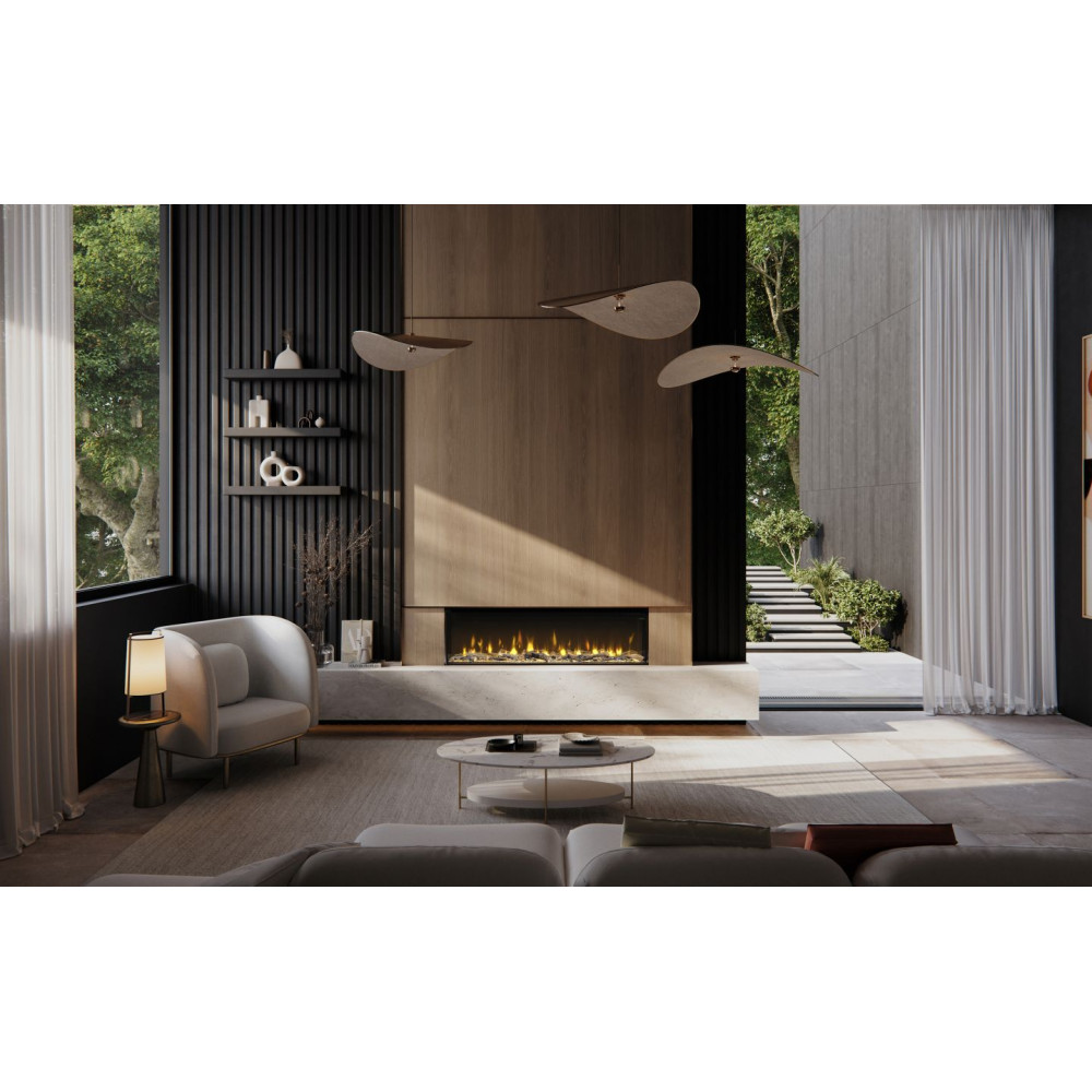 Вибір варіантів монтажуЦя ексклюзивна серія камінів доступна в трьох розмірах 50, 60 і 74 дюймів і пропонує три варіанти встановлення: одна скляна панель для вражаючого фронтального вогню, дві панелі для динамічного кутового огляду або три панелі для справді панорамного ефекту. Можливості для декорування - безмежні. |