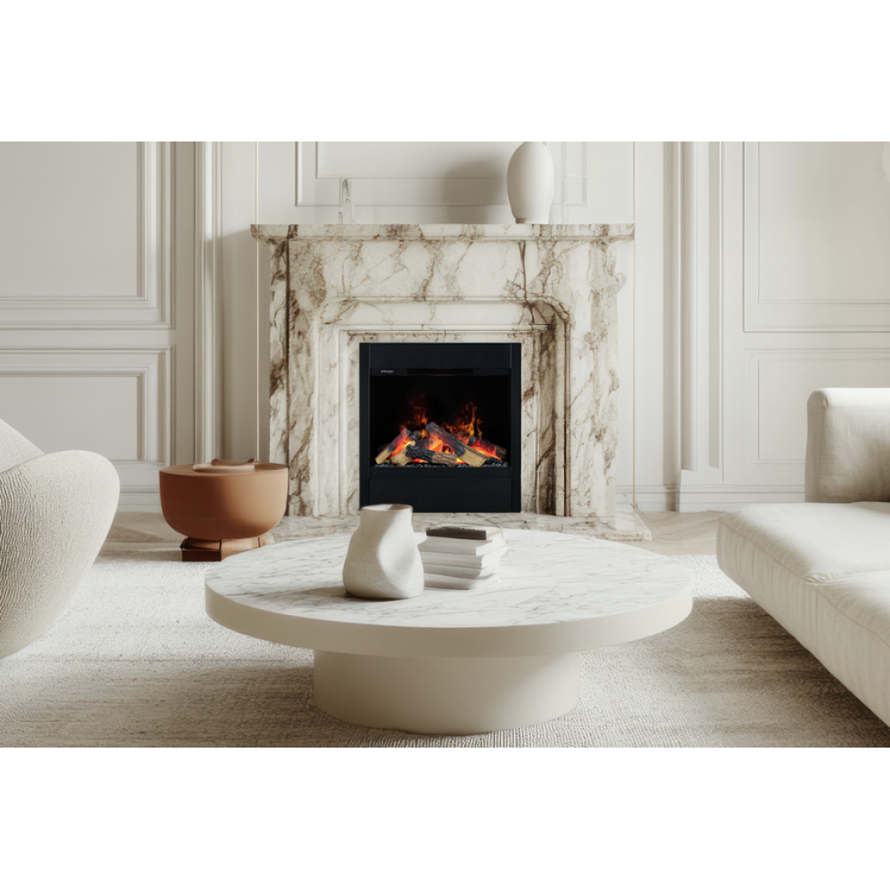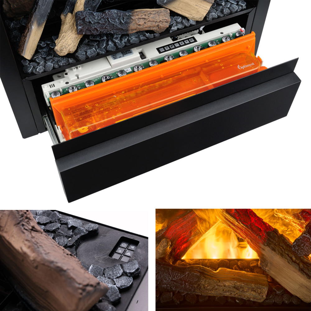 Безшумний під час роботи, ефект полум'я Optimyst® створює неймовірну атмосферу і може використовуватися незалежно від функції обігріву, щоб ви могли насолоджуватися вашим каміном в будь-яку пору року.