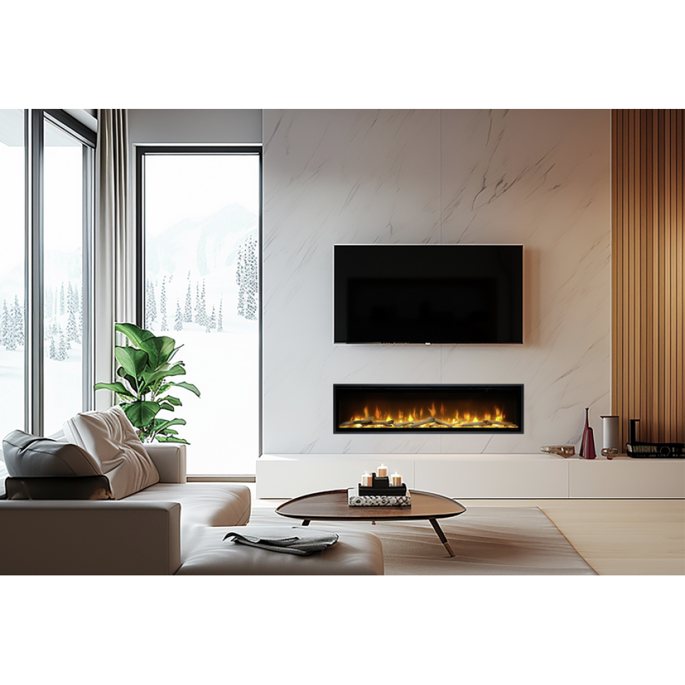 Ignite Evolve — це електричний камін зі склом від краю до краю для панорамного огляду полум’я. Завдяки глибині 14.7 см він ідеально підходить для сучасних приміщень та для встановлення на медіа-консоль. Камін доступний у розмірах: 50″, 60″, 74″, 100″. В ньому можна змінювати кольорові налаштування ефекту полум’я та нижнього підсвічування. А також керувати рівнем яскравості та швидкістю імітації горіння.