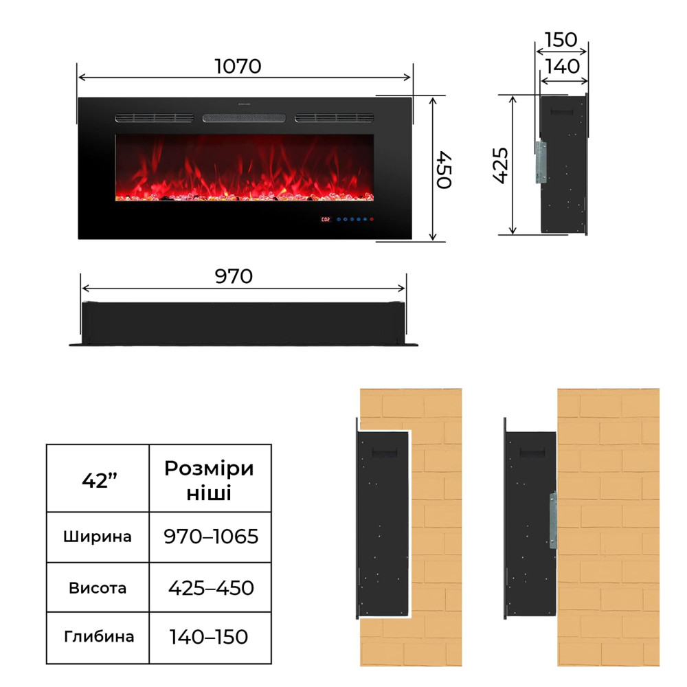 Модельний ряд серії камінів Galaxy представлений 5 моделями, з діагоналлю 36, 42, 50, 60, 72, дюйми (915/1070/1270/1524/1830x450x145 мм).