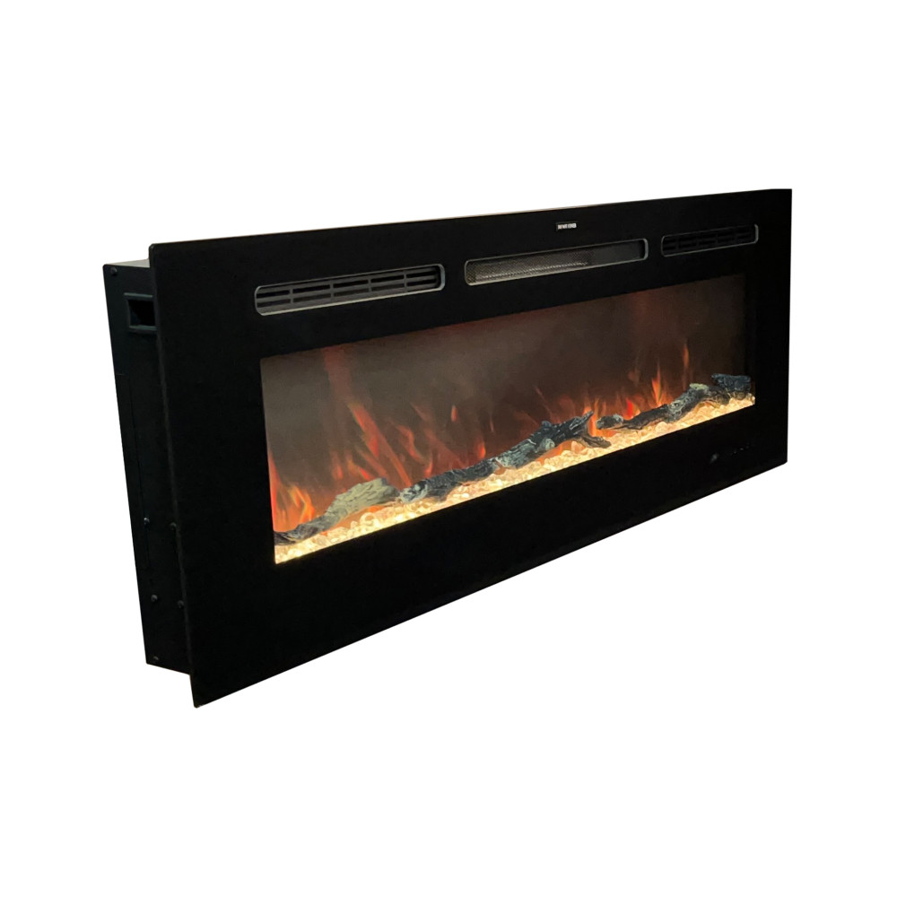 Для більшого комфорту в електрокамінах реалізовано функцію примусового дворівневого обігріву – 0,75 та 1,5 кВт. Гаряче повітря виходить із передньої частини каміна через отвори, розташовані зверху. Чутливий термостат здійснює контроль заданої температури обігріву з граничною точністю, реагуючи на мінімальні зміни температури повітря.