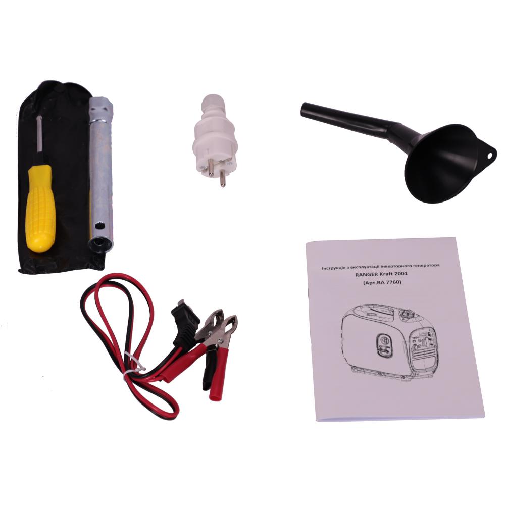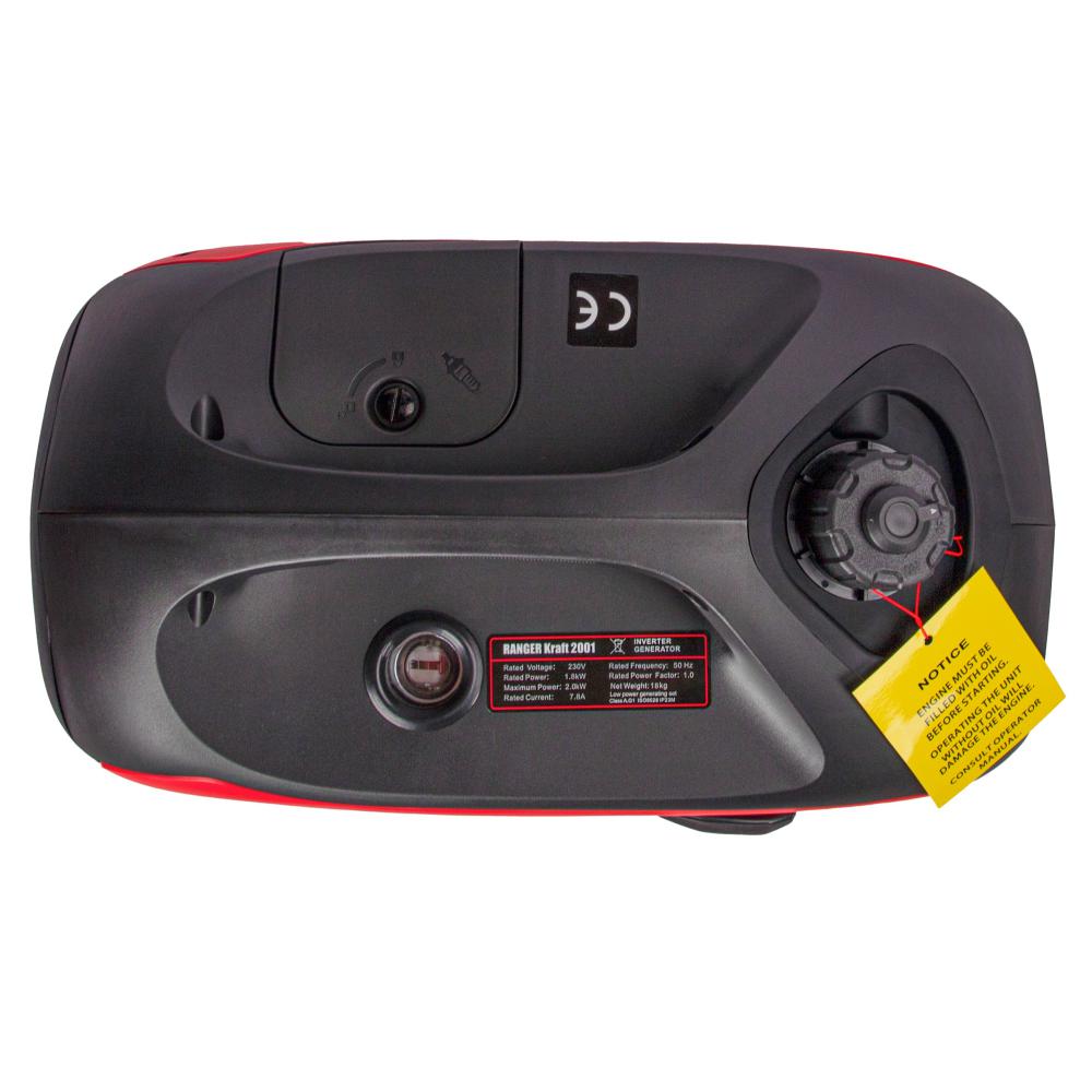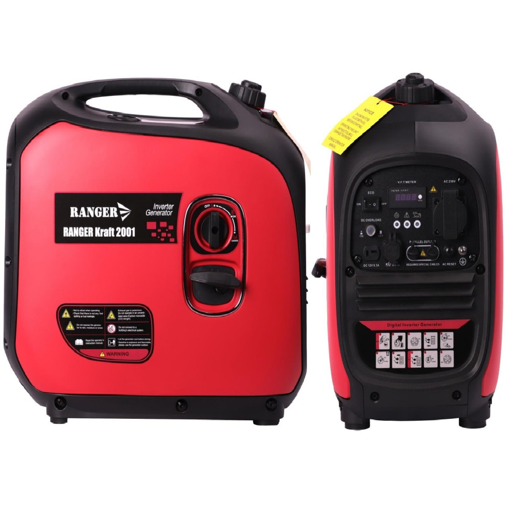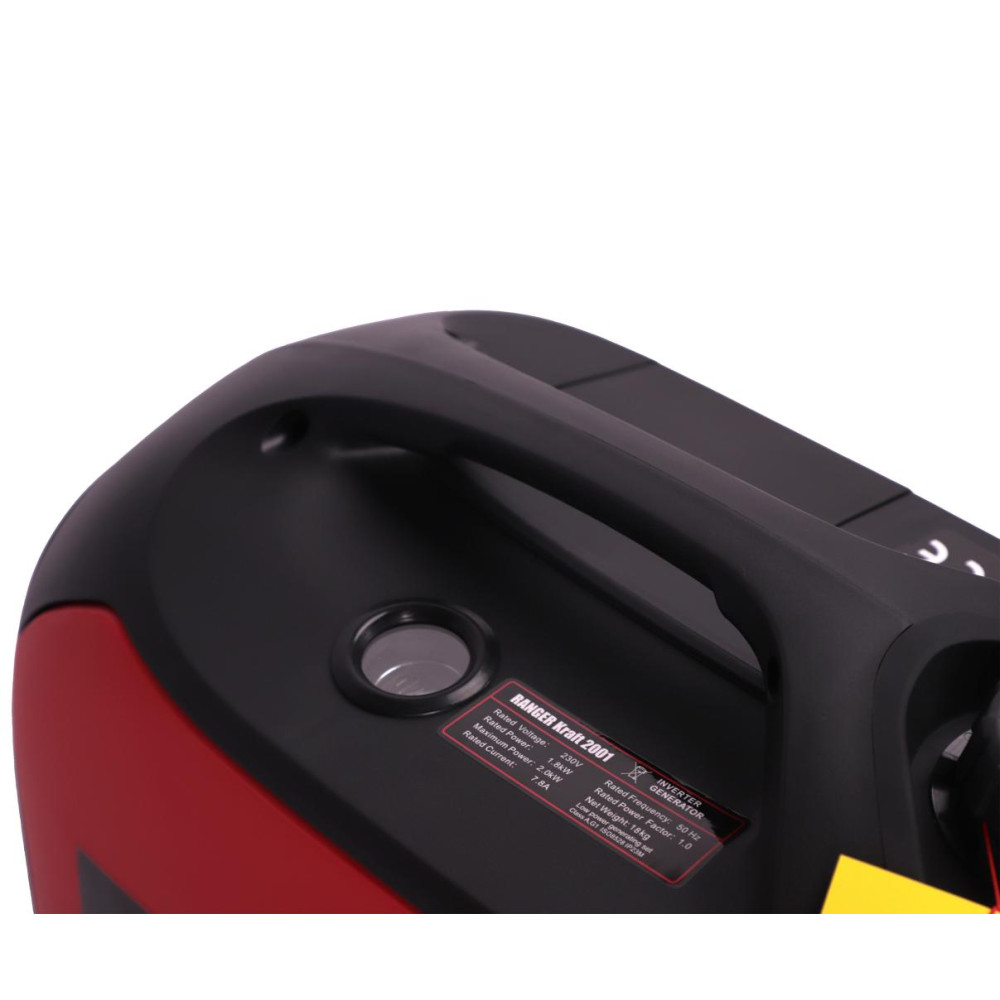 Інверторний бензиновий RANGER Kraft 2001 працює від одноциліндрового, 4-тактного двигуна з повітряним охолодженням. Дана модель має цифровий захист від перевантаження і відключить генератор, якщо навантаження перевищить максимальний поріг. За допомогою датчику мастила регулюється процес роботи і якщо рівень мастила впаде нижче встановленного рівня - генератор зупиниться. Цей генератор має максимальну потужність 2 кВт, чого достатньо аби живити телевізори, електричні обігрівачі, холодильники, плитки, ноутбуки, ліхтарі, тощо.