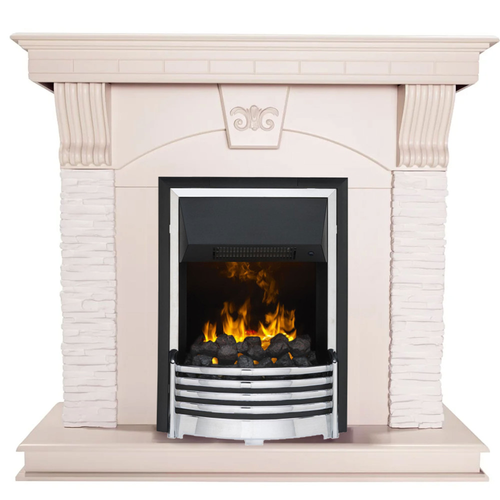 Портал Miranda виконаний з МДФ, кремово-білого кольору (RAL9001), з білим декоративним каменем (гіпсовим).