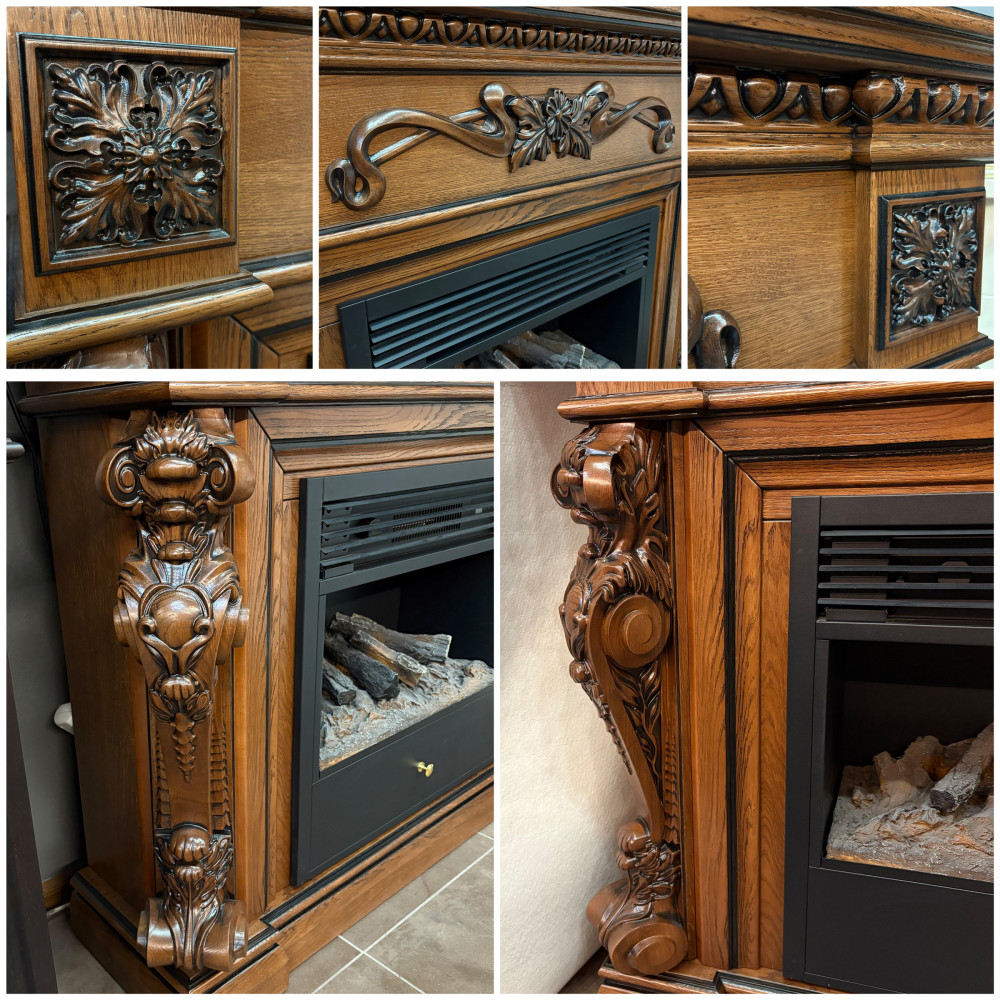 Камінокомплект складається з електрокаміна Royal 5D V-Art 25 і високоякісного порталу з різьбленими елементами.