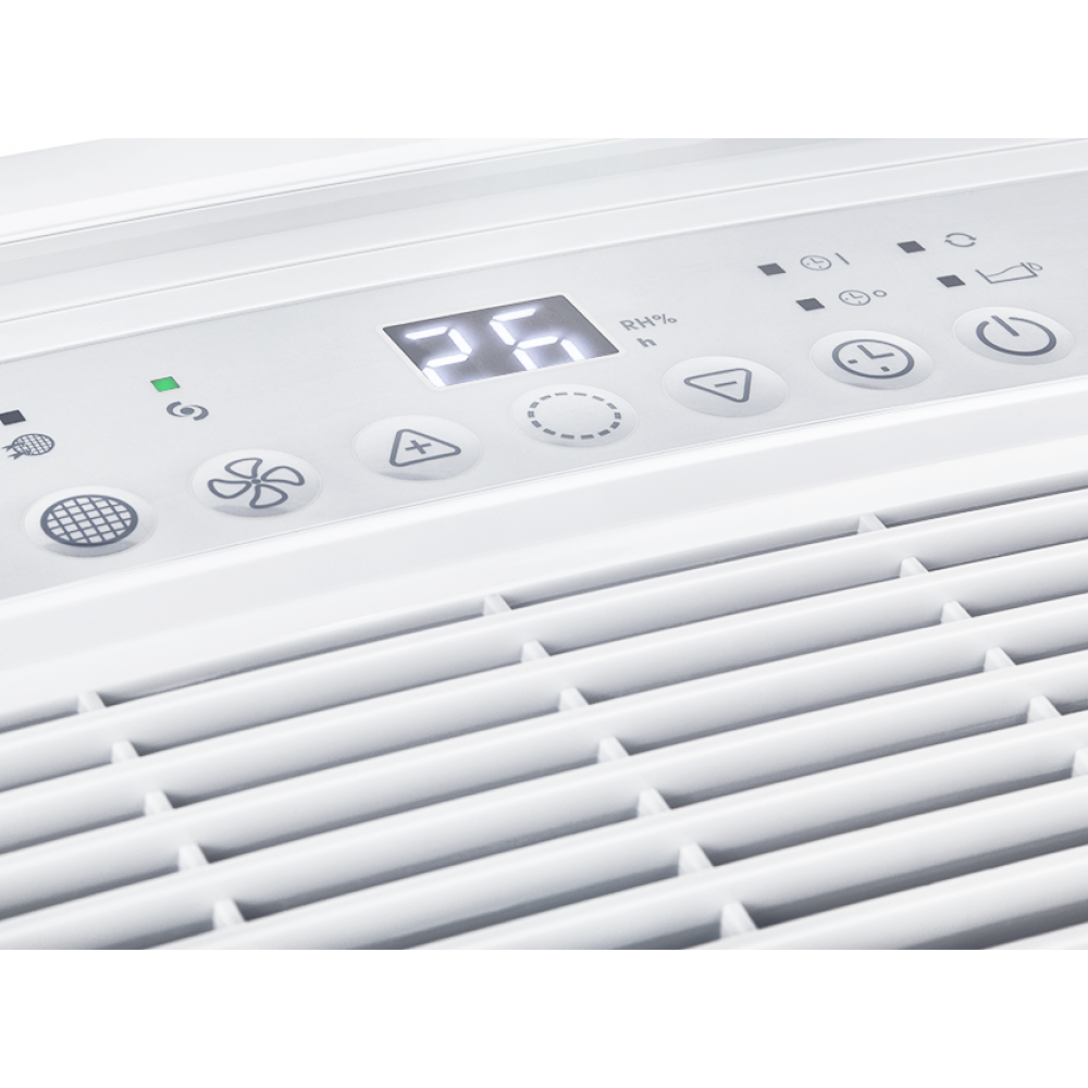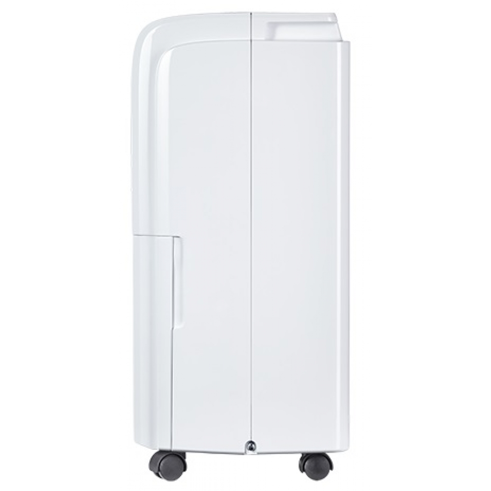 Модель отличается элегантным исполнением, компактными размерами, функциональностью, низким уровнем шума и имеет 3 режима работы. Встроенный гигрометр позволяет прибору с высокой точностью контролировать и поддерживать здоровую влажность в доме. Параметры работы отражает LED-дисплей, а удобное электронное управление позволяет выбрать оптимально комфортный уровень влажности. Вы сможете задать необходимый уровень влажности максимально точно от 35% до 80% с шагом всего в 5%. В помещениях с максимальным уровнем влажности удобным будет режим непрерывного осушения, в котором прибор работает на максимальных оборотах. Благодаря датчику количества воды в приборе, осушитель самостоятельно отключится, как только емкость для сбора конденсата заполнится (бак объемом 3,8 л). С помощью функции Таймер, Вы сможете задать начало и окончание работы прибора. Два способа сбора конденсата в бак, а также в специальное дренажное отверстие либо емкость, при помощи шланга, делают прибор максимально удобным в использовании.