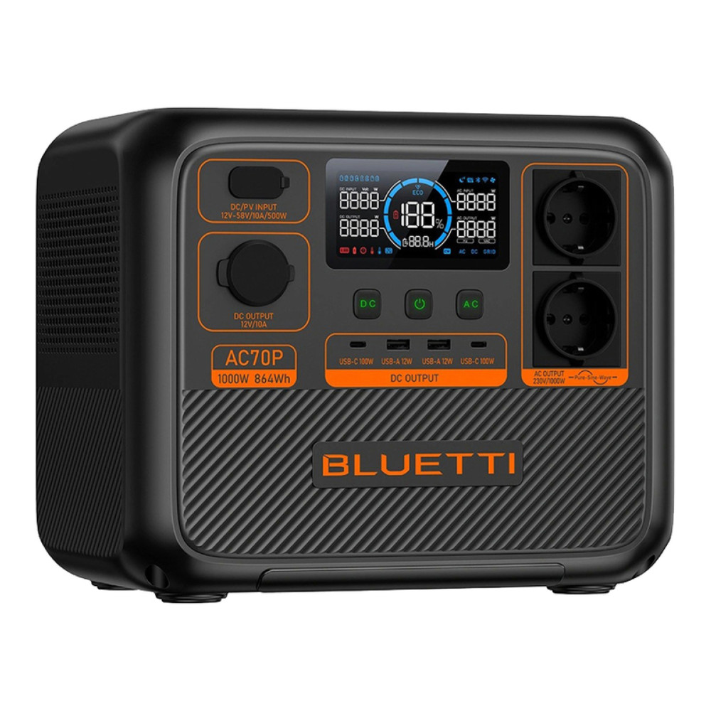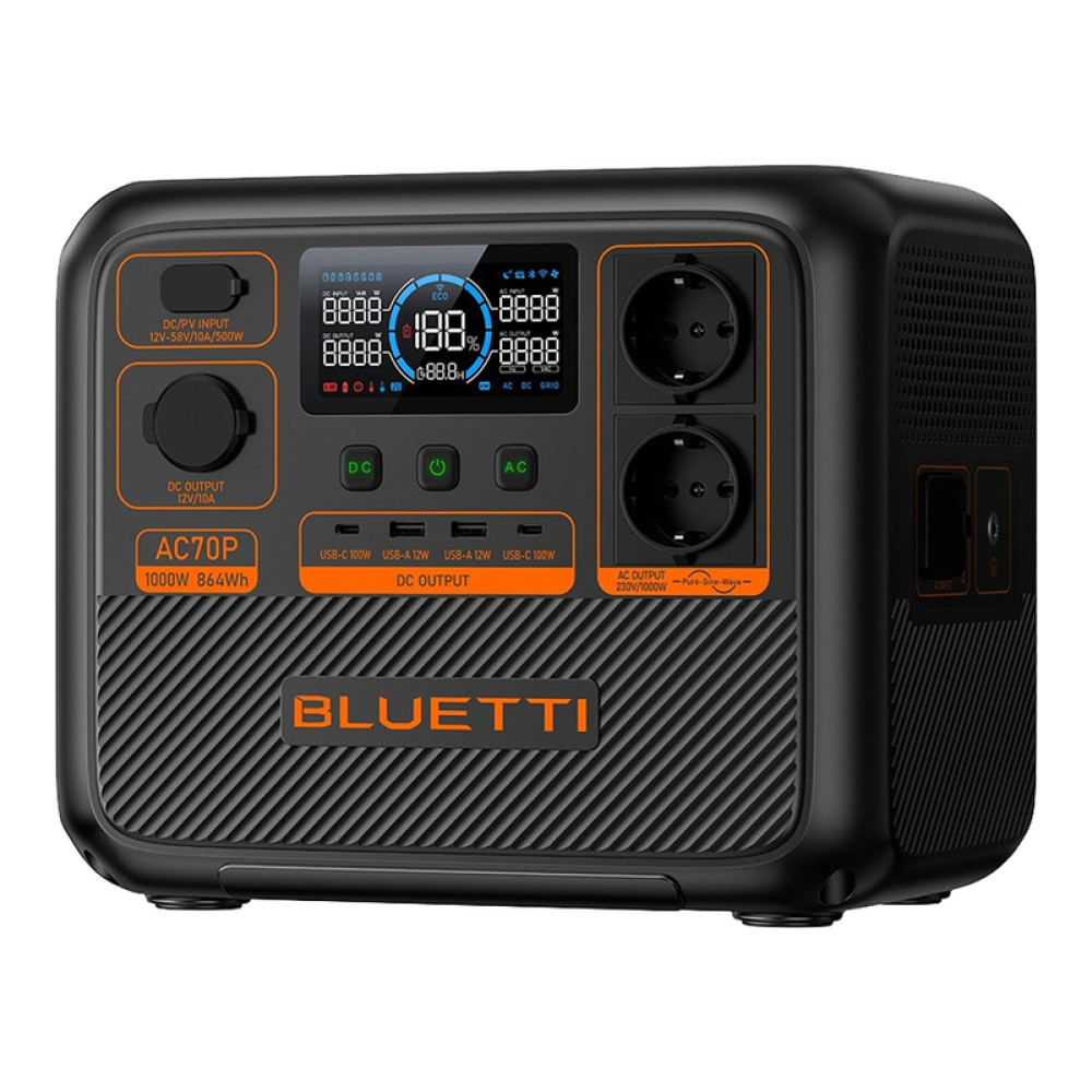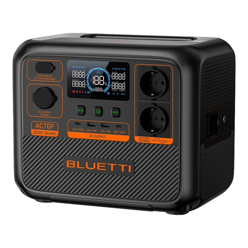 Bluetti AC70P - це портативна електростанція, яка вражає своєю потужністю та інтелектуальними можливостями. З номінальною потужністю 1000 Вт та піковою 2000 Вт, ця електростанція стане невід'ємним компаньйоном для подорожей та використання в побуті.