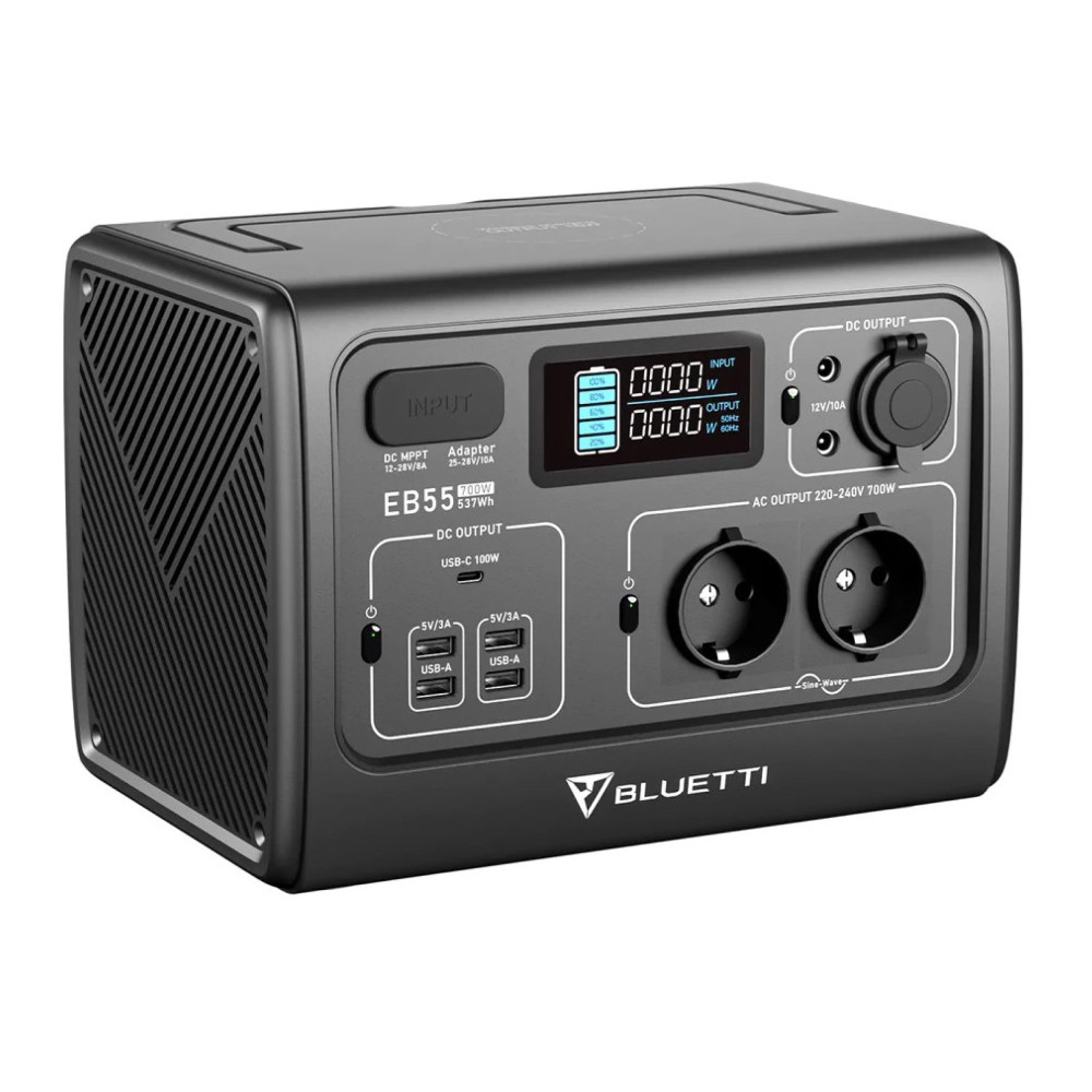 Ця сонячна електростанція BLUETTI EB55 ємністю 537Втч та потужністю 700Вт має невеликий дизайн та відмінну функціональність. Вона може використовуватися як аварійне джерело живлення під час стихійних лих і бути дуже корисною для кемпінгу, відпочинку, садівництва та віддаленої роботи.
